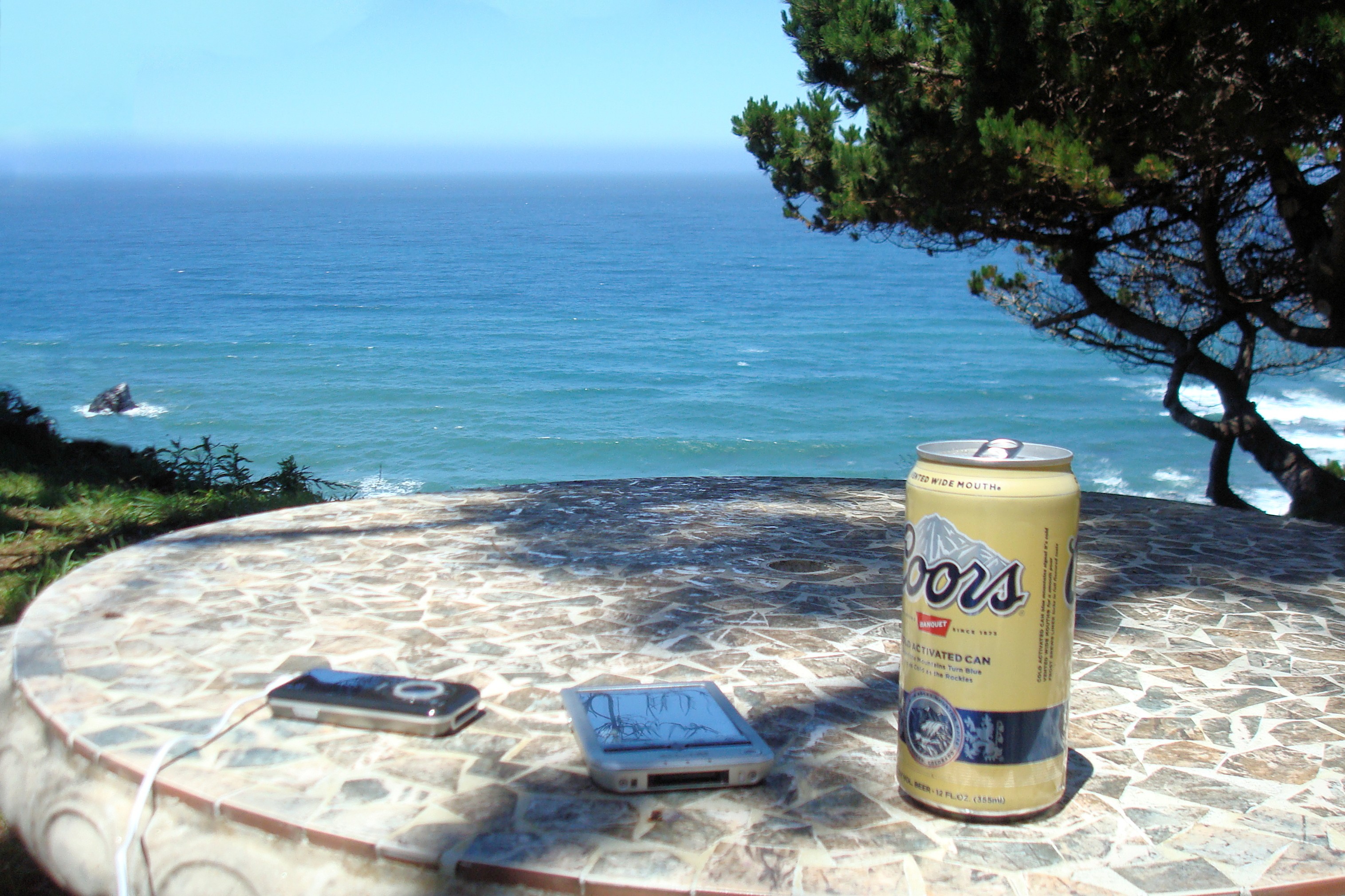 An mp3 player, a PDA and a beer at the sea in '03 |