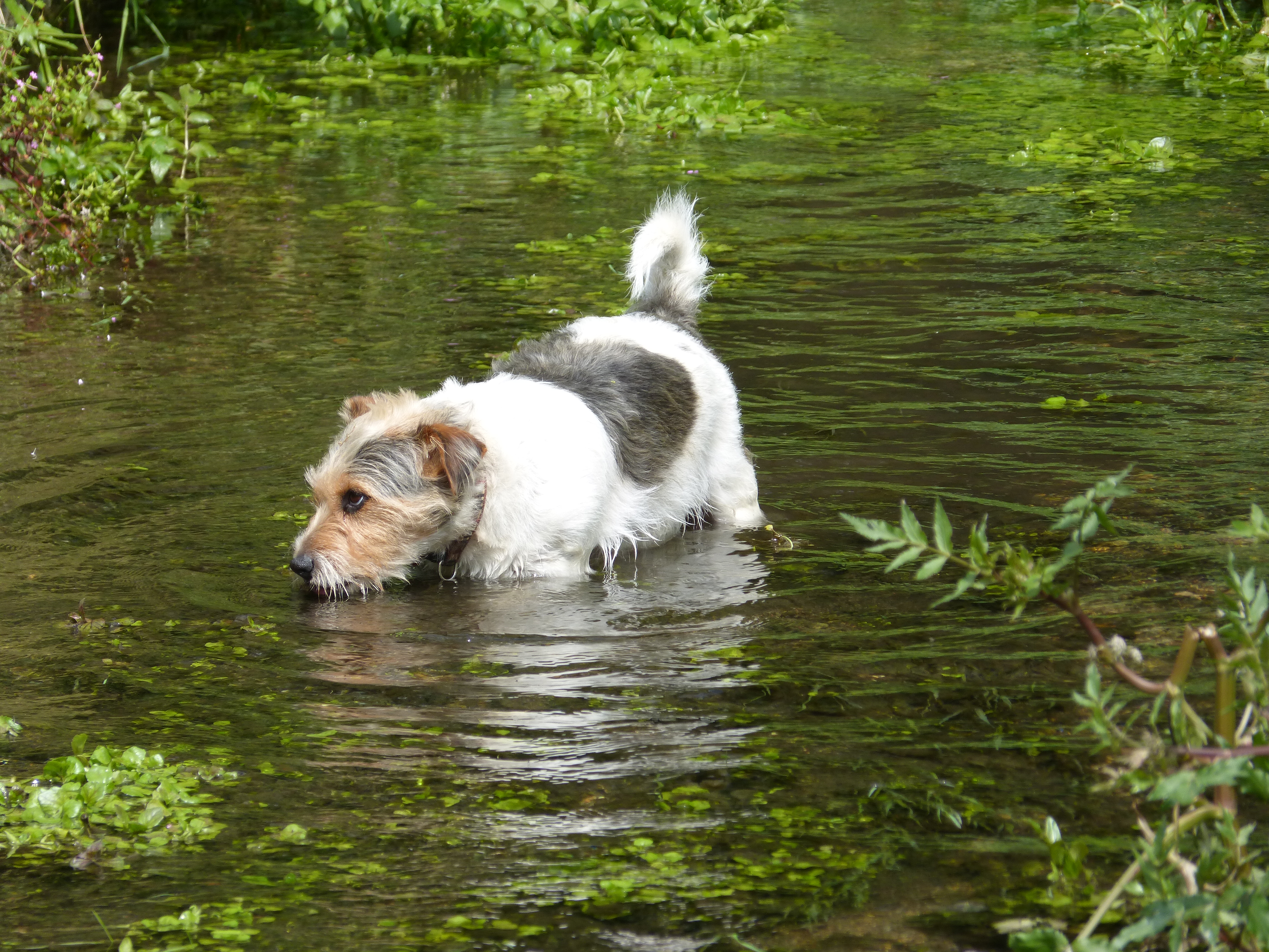 | Notice the mortice atop the flagstone. The Stonehenge builders were likely early British engineers! | Molly (the first Molly dog not to be confused with Molly the dog on the Torquay ferry) was one of my favorite sites in England. How can you beat a Jack Russel in a stream for pure joy! |
