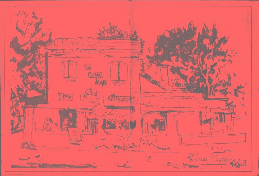 Hotelier's Pont du Gard painting in cafe